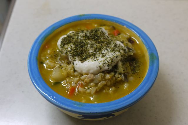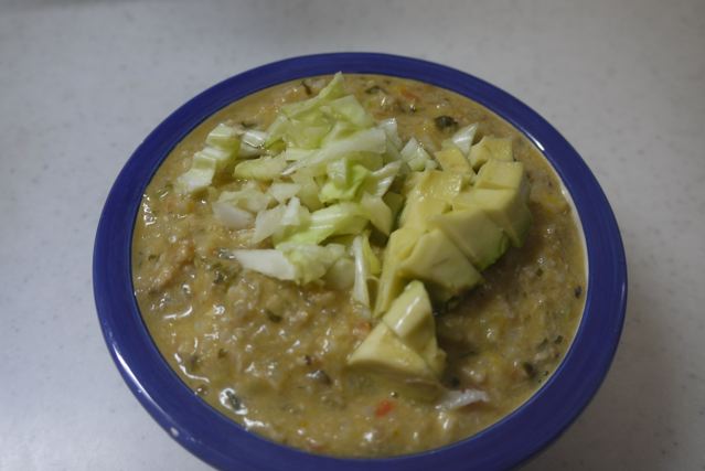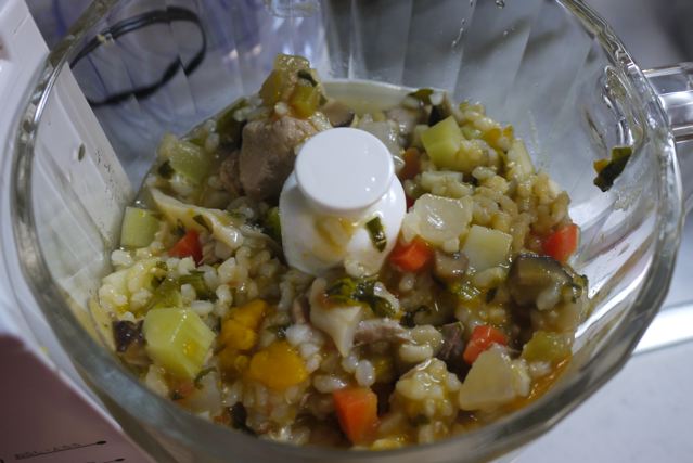 単純に粗めにフープロにかけて、柔らかくて栄養価の高いアボカドをトッピングしただけです。。。