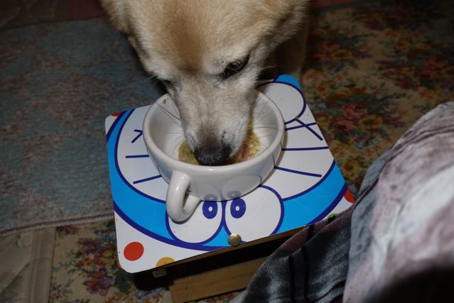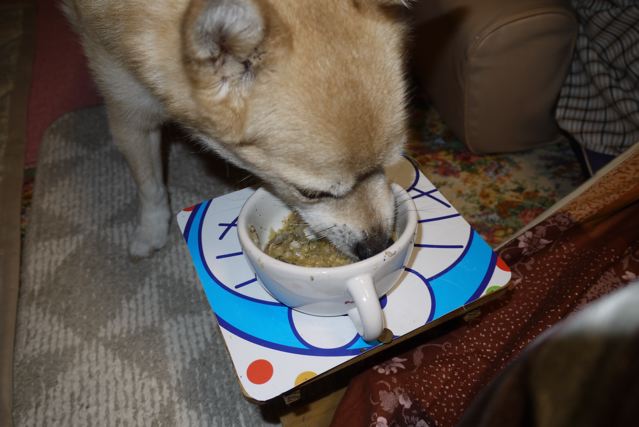 (我が家では、ジュンも同じ時間にごはんを食べています)
