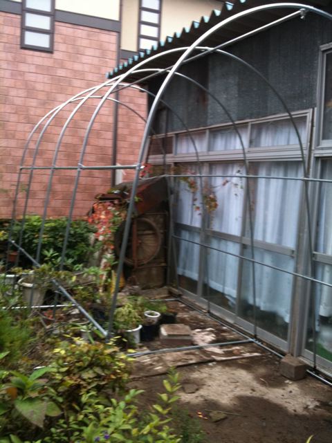 現在作成中のビニールハウス。
