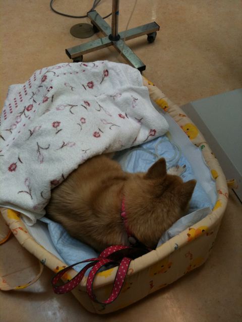 今日は診察室でもクーハンの中で点滴を受けていました。